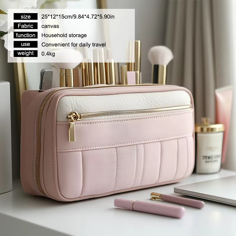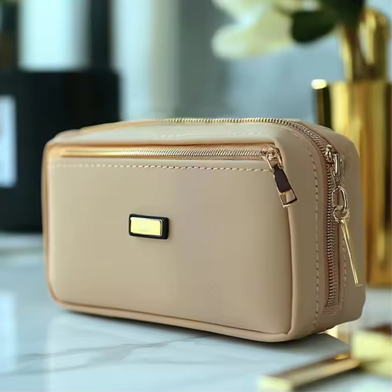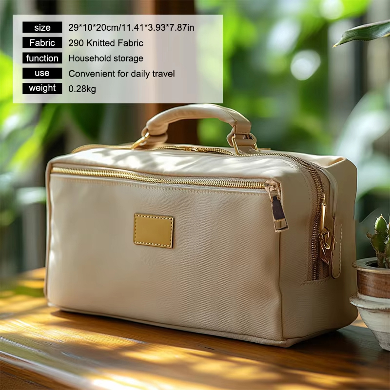 Su tamaño compacto garantiza que pueda colocarse cómodamente en el estante del baño, en la mesa del tocador o incluso guardarse en un cajón cuando no esté en uso. El sistema de cierre seguro ayuda a mantener todo el interior protegido y organizado, lo que hace de este bolso una opción práctica para la organización diaria del hogar.