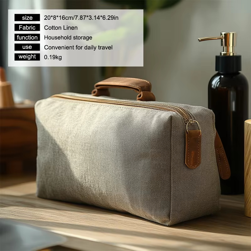 Otra ventaja de la bolsa de almacenamiento de artículos de tocador para cosméticos de gran capacidad es su bajo mantenimiento. La tela de lino de algodón es fácil de limpiar, lo que le permite limpiarla con un paño húmedo o lavarla suavemente a mano cuando sea necesario. Esto lo convierte en una opción práctica para quienes desean una solución de almacenamiento que sea funcional y fácil de cuidar.