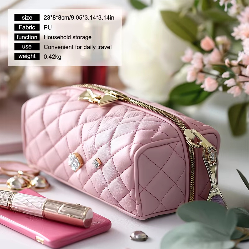 Diseñada para soportar los rigores de los viajes y el uso diario, esta bolsa de cosméticos está hecha con materiales de alta calidad diseñados para durar. El cuero PU impermeable no solo agrega un toque lujoso sino que también hace que la bolsa sea resistente al desgaste, lo que garantiza que permanezca impecable durante mucho tiempo.