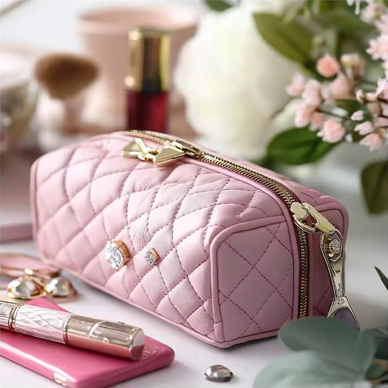 A pesar de su tamaño compacto, este bolso proporciona un amplio espacio de almacenamiento con múltiples compartimentos para organizar tus cosméticos y artículos de tocador. Hay mucho espacio para pinceles de maquillaje, lápices labiales, productos para el cuidado de la piel y más, manteniendo todo cuidadosamente en su lugar. El espacioso interior garantiza que puedas acceder a tus artículos de forma rápida y sencilla.