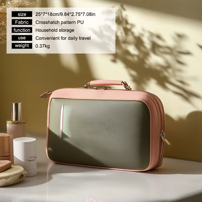 Con múltiples compartimentos y un diseño inteligente, este bolso ofrece amplio espacio para todo tu maquillaje, artículos de tocador y otros pequeños elementos esenciales. Puedes organizar fácilmente tu base, lápiz labial, rímel, cepillo de dientes y otros productos en sus espacios designados. La versatilidad del bolso lo convierte no solo en un organizador de cosméticos, sino también en una bolsa de artículos de tocador, lo que lo convierte en una solución todo en uno ideal para cualquier persona en movimiento.
