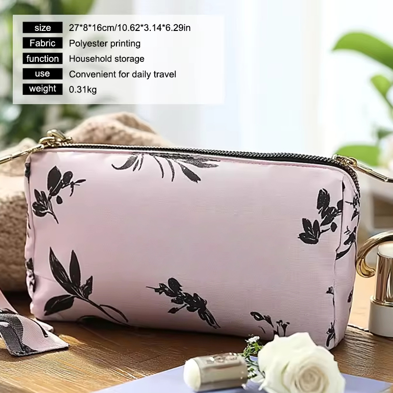 La bolsa cosmética portátil de poliéster impresa no solo es ideal para viajar—, sino que también sirve como una excelente herramienta organizativa para el almacenamiento doméstico. Ya sea que lo uses para guardar maquillaje, joyas o artículos de tocador en casa, esta bolsa ayuda a reducir el desorden y al mismo tiempo mantiene todo cuidadosamente organizado. Su versatilidad lo convierte en un complemento ideal para cualquier kit doméstico o de viaje.