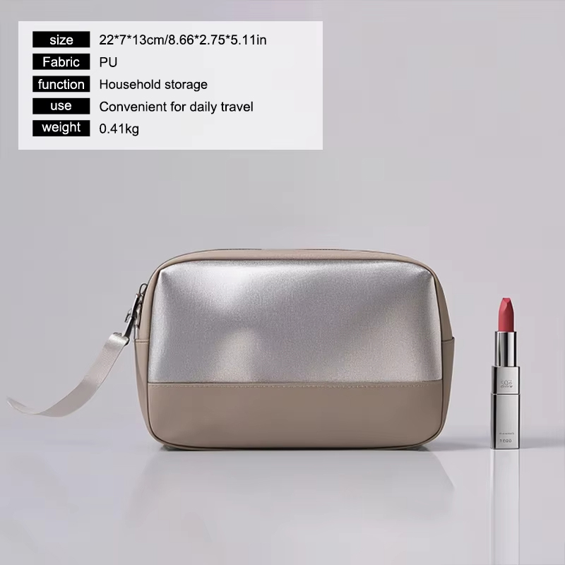 El bolso es ligero y compacto, lo que lo hace ideal para viajar. Su naturaleza portátil te permite guardarlo en tu equipaje, equipaje de mano o incluso en tu bolso sin ocupar demasiado espacio. El cierre de cremallera garantiza que sus cosméticos y artículos personales se almacenen de forma segura, evitando derrames o ensuciamientos no deseados mientras está en movimiento.