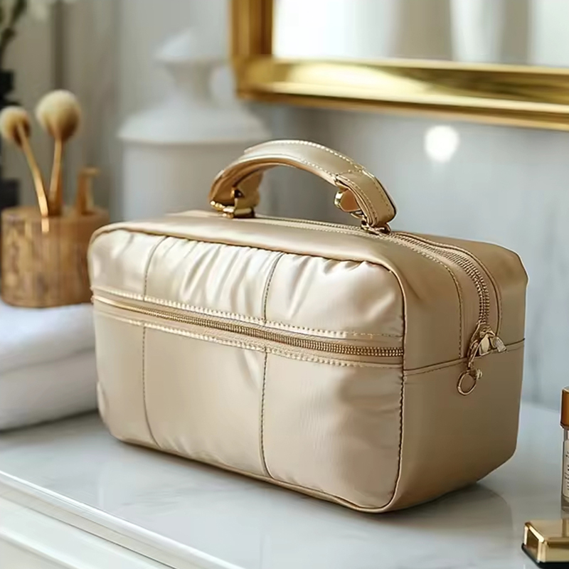 Ya sea que se dirija a la oficina, realice un viaje de fin de semana o se embarque en unas vacaciones más largas, este organizador de viajes es el compañero ideal. Su aspecto elegante, sus amplios compartimentos y su diseño práctico lo convierten en un accesorio esencial para cualquiera que busque mantener organizados sus cosméticos y artículos de tocador. La bolsa cosmética acolchada de cuero PU Travel Organizer ofrece una forma elegante y eficiente de administrar sus elementos esenciales diarios.