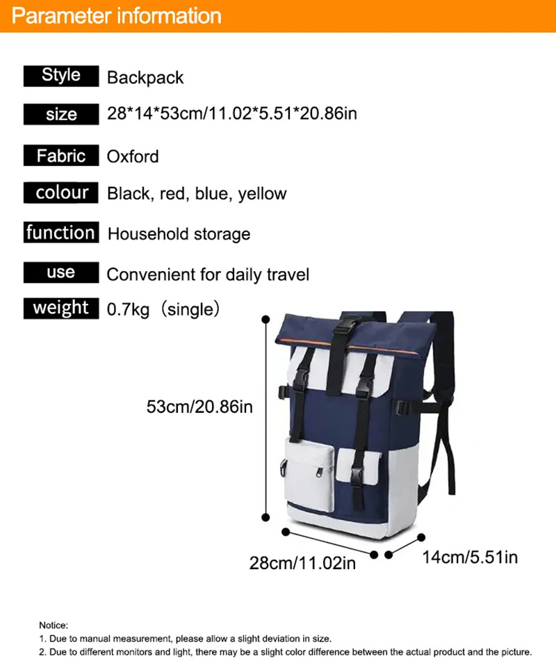 La Mochila Clásica para Viaje, Impermeable y con Tapa Enrollada para Laptop es tan elegante como práctica. Su diseño estilizado y minimalista combina bien con atuendos tanto casuales como de negocios, lo que la hace adecuada para una amplia gama de ocasiones. Ya sea que la uses para una escapada de fin de semana, un viaje diario o como equipaje de mano para un vuelo, esta mochila encajará perfectamente en tu estilo de vida.