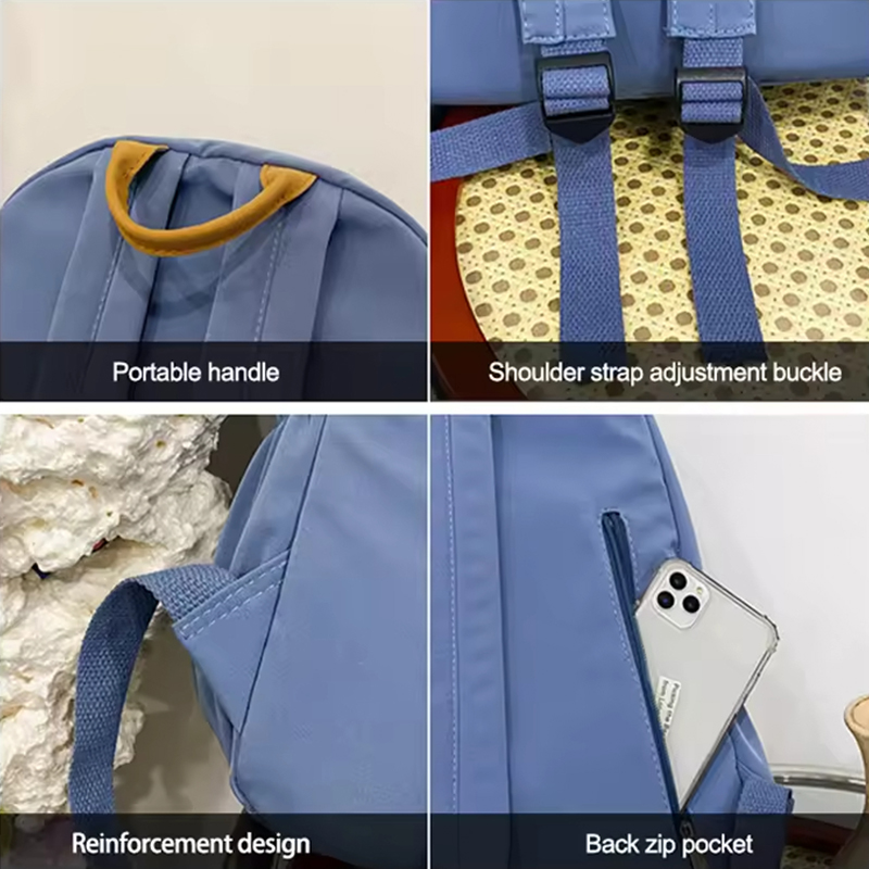 El bolso escolar sencillo informal de nailon también incorpora un diseño de refuerzo bien pensado. Los puntos de tensión clave, incluida la base y las correas de los hombros, están reforzados para evitar el desgaste con el tiempo. Esta durabilidad adicional garantiza que su bolso permanezca en óptimas condiciones, incluso después de meses de uso. El diseño reforzado agrega resistencia a las áreas que generalmente enfrentan mucha tensión, lo que le brinda la tranquilidad de saber que su bolso puede soportar cargas pesadas.