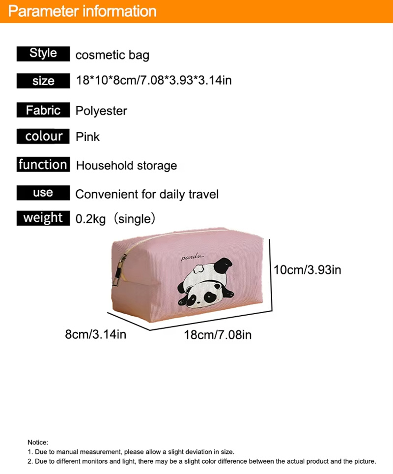 Además de su uso principal como bolsa de tocador, la bolsa de tocador pequeña con patrón de dibujos animados también puede servir como un pequeño estuche de cosméticos o un organizador de viajes. Es ideal para guardar maquillaje, productos para el cuidado de la piel, accesorios para el cabello o incluso pequeños dispositivos como cargadores y auriculares. Su versatilidad lo convierte en un artículo imprescindible para cualquiera que busque optimizar sus pertenencias manteniendo un sentido de organización.