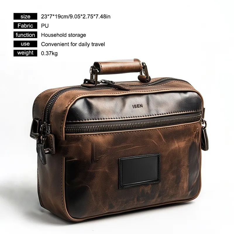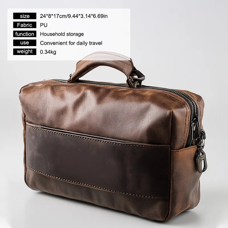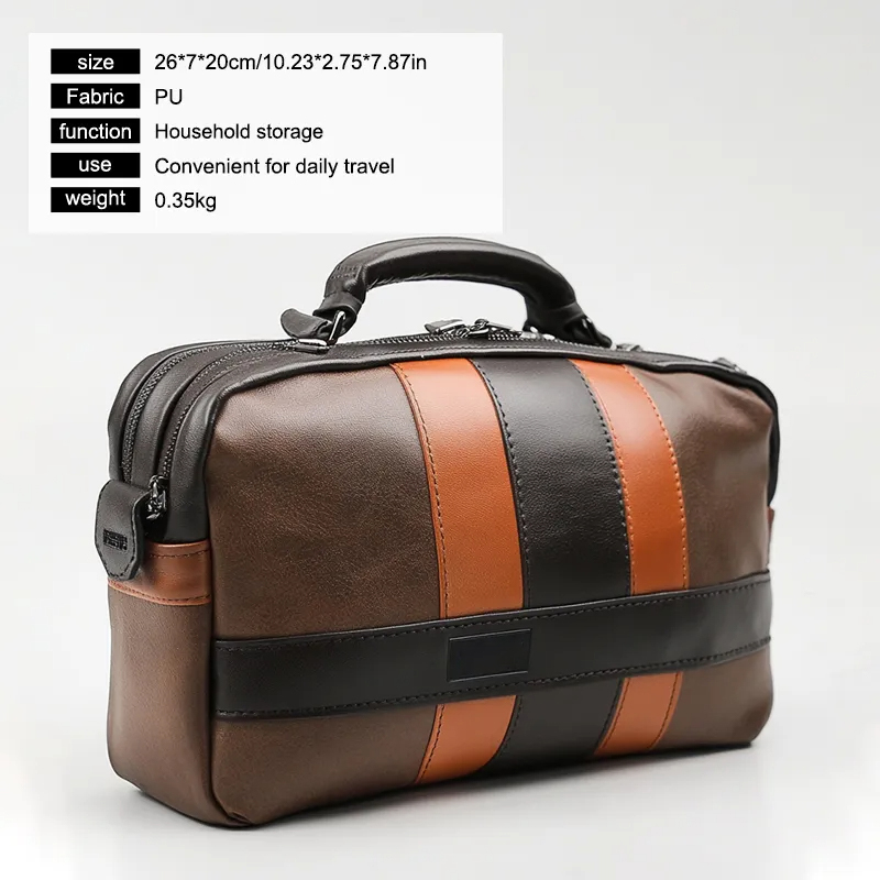 Más allá de su uso en viajes, la bolsa cosmética impermeable para artículos de tocador de viaje para hombres de PU también sirve como una buena solución de almacenamiento doméstico. Puedes usarlo para almacenar tus productos de aseo diario o cualquier otro pequeño artículo personal que necesites mantener organizado. Su tamaño compacto garantiza que no ocupará demasiado espacio, mientras que el material impermeable añade una capa extra de protección para tus pertenencias.