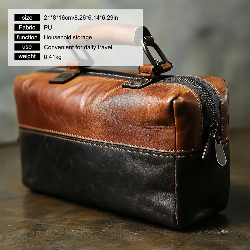 La bolsa cosmética impermeable PU para artículos de tocador de viaje para hombre ofrece el equilibrio ideal entre funcionalidad y estilo. Con su tela impermeable duradera, múltiples compartimentos y diseño compacto, es la solución de almacenamiento ideal para el uso diario y los viajes.